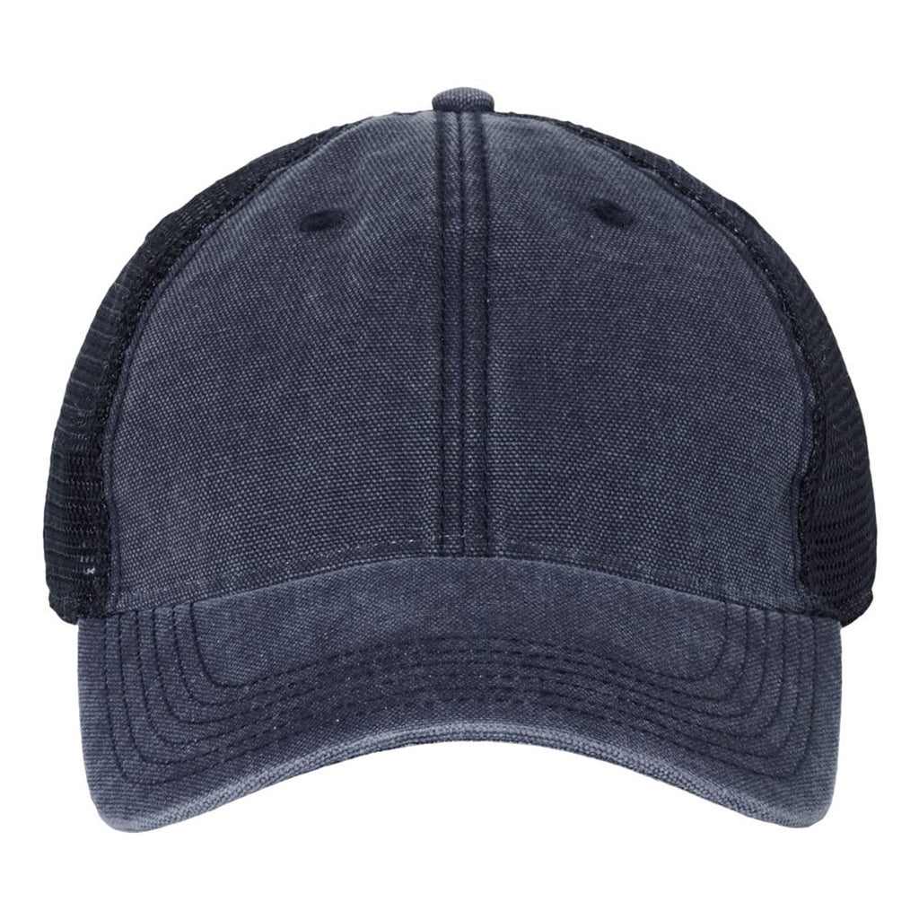 Go old school with embroidery on a Legacy Navy Dashboard Trucker Cap. In true trucker cap style fashion, the cotton polyester front is completed by the washed canvas crown and mesh back. The worn in look adds flair to this traditional style with the pre-curved visor for impressive fit. Add a company logo to use as part of employee apparel or uniform wear or add a custom logo to create a unique gift or sales item. The unstructured, six-panel, low profile design is comfortable from day one in the one size fits most style with snapback closure for adjustment.Highlights