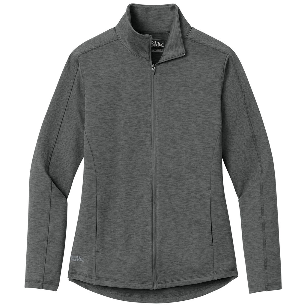 The Eddie Bauer Women's Metal Grey Heather Adventurer Full Zip provides a flattering fit with practical custom appeal for corporate teams or group events. Featuring durable, lightweight fabric, it keeps wearers comfortable through all-day activities. This full zip layer effortlessly showcases embroidered logos beautifully, making it a reliable choice for active adventures and company representation.