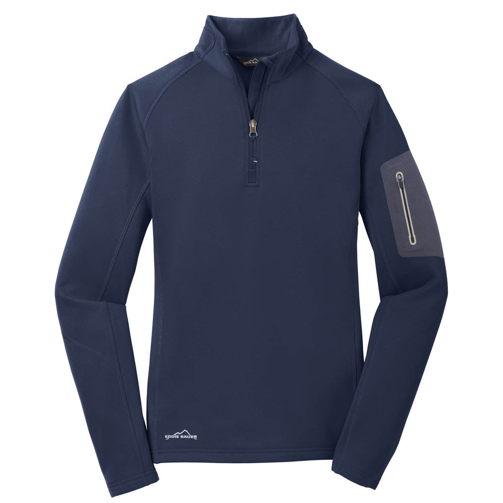 Performance is an underrated art in the world of the fleece jacket. Many people think it's for comfort; but comfort is easy. A jacket like this Eddie Bauer Women's River Blue Half Zip Performance Fleece Jacket goes above and beyond the realm of comfort and adds fashion versatility as well as durability and performance. Maybe that's due to the high-quality, lightweight poly/spandex blend that's every bit as comfortable as it looks all while accomplishing the feat of being much more durable than it appears. Why? Because jackets this good tend not to last. This one does. Add your custom embroidery onto it to make sure your corporate logo lasts just as long.