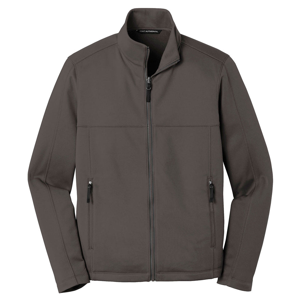 A smooth face and brushed back push the custom logoed Port Authority Men's Graphite Collective Smooth Fleece Jacket into a fashion class above casual corporate apparel. Contrast cover stitching produces a design element that stands out among the apparel worn at crowded trade shows. With a captive audience at your booth, display the company logo added on the large imprint area. Snap the attachments on the inside of the jacket to bundle up for a day of outdoor recreational activities. The slightly longer length than what you expect from a jacket creates a refined appearance worthy of a fashionable professional.Corresponding Women's Style: Port Authority Women's Graphite Collective Smooth Fleece Jacket