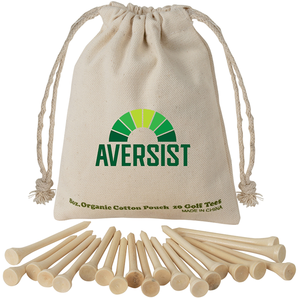 - 20 piece 2 3/4" golf tee set in a cotton drawstring bag