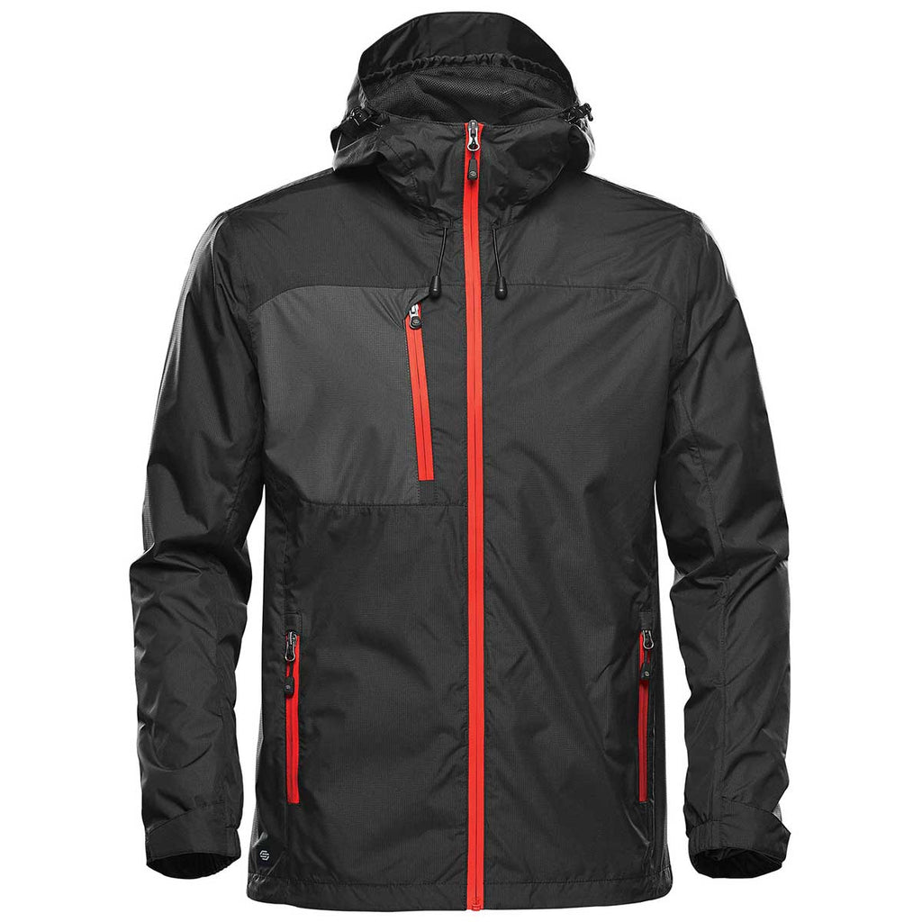 Enjoy a custom logo Stormtech Men's Black/Bright Red Olympia Shell whether the rain is falling or not. Ready for the unpredictability of summer, this shell is lightweight, waterproof, and breathable with an adjustable hood and full-length storm flap. This shell is articulated for comfort with superior, technical weather ready features. Ideal for workwear or as a corporate gift that can be enjoyed on days off. Add the logo of your design and choosing to offer these for whatever purpose you desire.Highlights