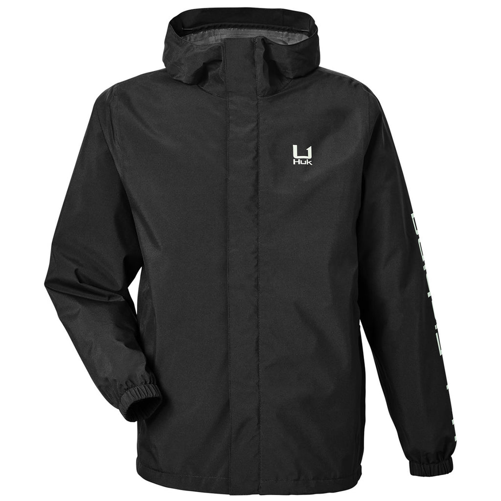 Add a corporate logo to the HUK Men's Black Storm Rain Jacket for a work ready jacket that is ready for poor weather. This durable, water-repellent polyester fabric has a storm flap cover and side seam pockets for convenience. Great for those who work outdoors in all conditions or those who simply love to explore nature.Corresponding Women's Style: HUK Women's Black Storm Rain Jacket