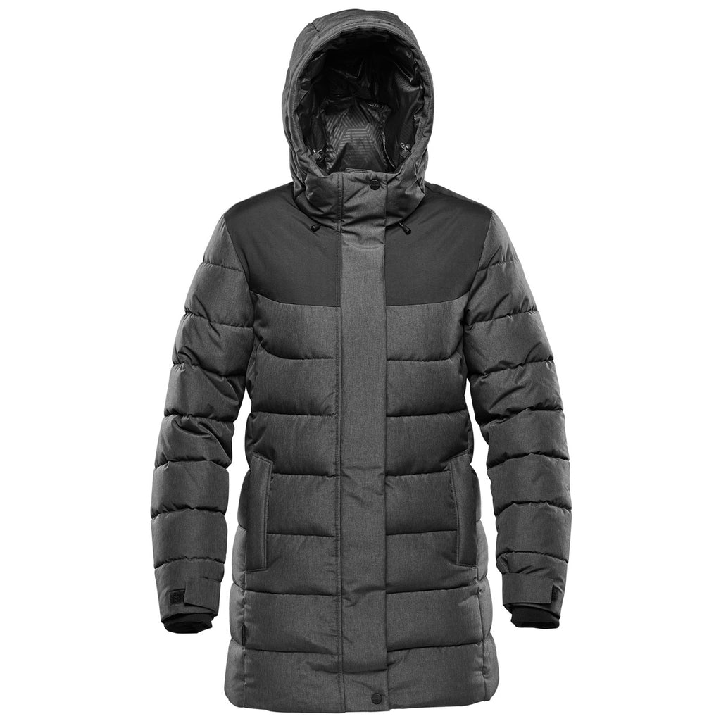 Add embroidery to the Stormtech Women's Heather Grey Oslo HD Parka for a look that can go from home, to school, to everywhere in between. This high style parka is a must have for those that brave the cold weather or enjoy extreme weather adventure no matter what. This urban fashion functions effortlessly to deliver warmth and comfort all day, every day if needed. The 3/4 length quilted parka has a full storm flap on the outer shell, storm cuffs, and an adjustable hood with face shield. The entire thing is waterproof and breathable even when working and playing your hardest. Add a custom logo to give as a gift or just to add to your wardrobe.Corresponding Men's Style:Stormtech Men's Heather Grey Oslo HD Parka