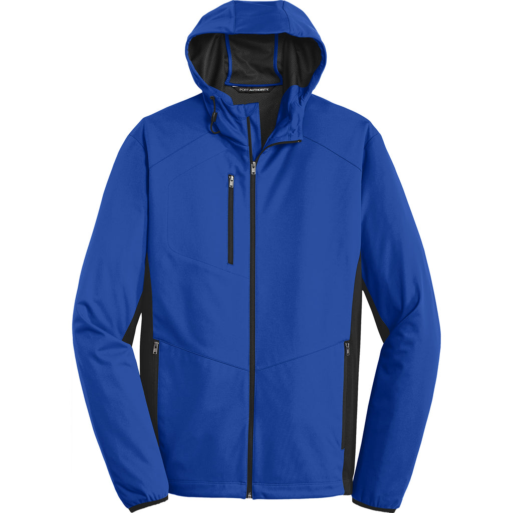 With a three-panel hood and adjustable drawcord, the Port Authority Men's True Royal/Deep Black Active Hooded Soft Shell Jacket protects your head from Mother Nature's storm. The 100% polyester knit shell attaches to a waterproof film insert. Front zippered pockets store all of your valuables for lengthy hikes in the backcountry. The polyester mesh interior does an outstanding job of circulating air to keep you perspiration free. Designed to wear during all four seasons, the jacket provides you with fashion versatility. Add a custom logo to the large imprint area and watch awareness of your company grow.Highlights
