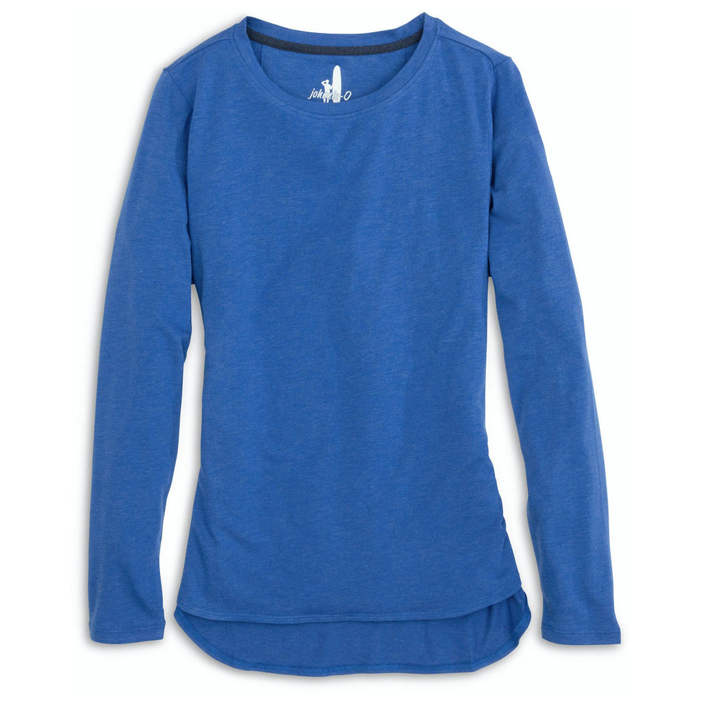 Add embroidery to the Johnnie-O Women's Royal Addison Long Sleeve Shirt to enjoy a custom look that is ready for some fun. Wear alone or layer this long-sleeved tee to your favorite sporting event, to work out, or just to chill with friends. The slightly longer hem offers coverage as you go about whatever your day may hold. Order yours today.Highlights