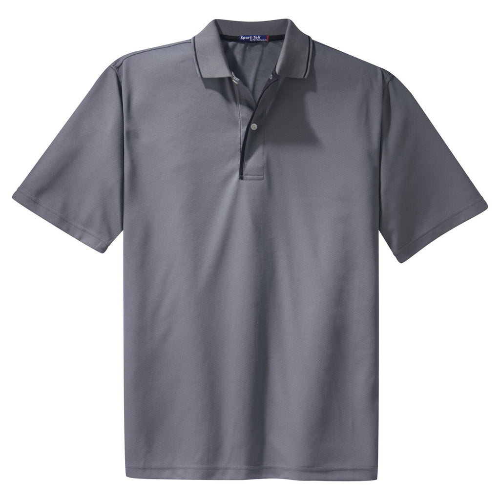 Sport-Tek Men's Steel/Black Dri-Mesh Polo with Tipped Collar and Piping