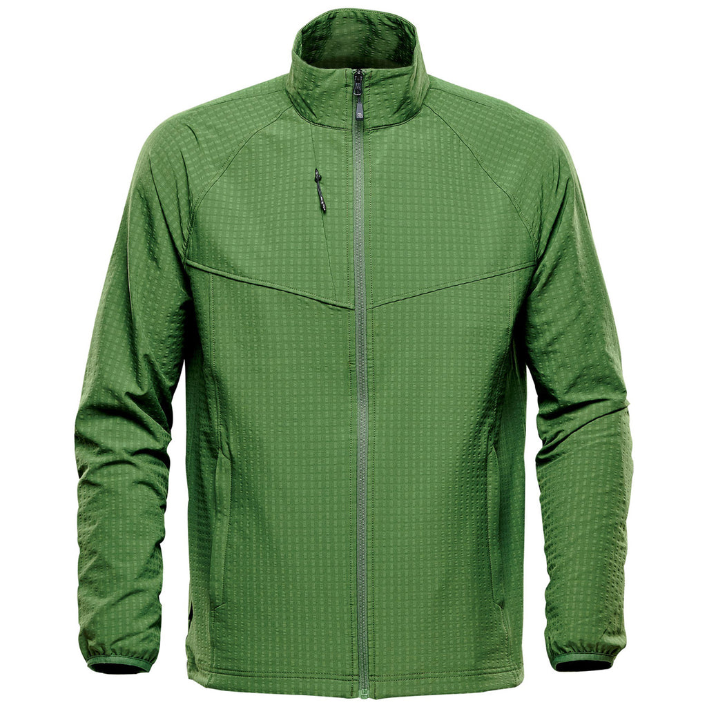 Enjoy a custom look with the Stormtech Men's Garden Green Kyoto Jacket. This unique jacket has a hard faced waffle backed fabric that traps pockets of warm air on the interior to protect you from cold weather. Advanced stretch technology allows for freedom of movement to keep you moving, even when working outdoors. Add a custom logo to create a logoed apparel line for your business or a company logo to give as employee gifts for the next holiday or special occasion. The superior range of motion paired with enhanced breathability keeps you comfortable whether running errands, enjoying the great outdoors, or hanging out with friends after work.Corresponding Women's Style:Stormtech Women's Garden Green Kyoto Jacket