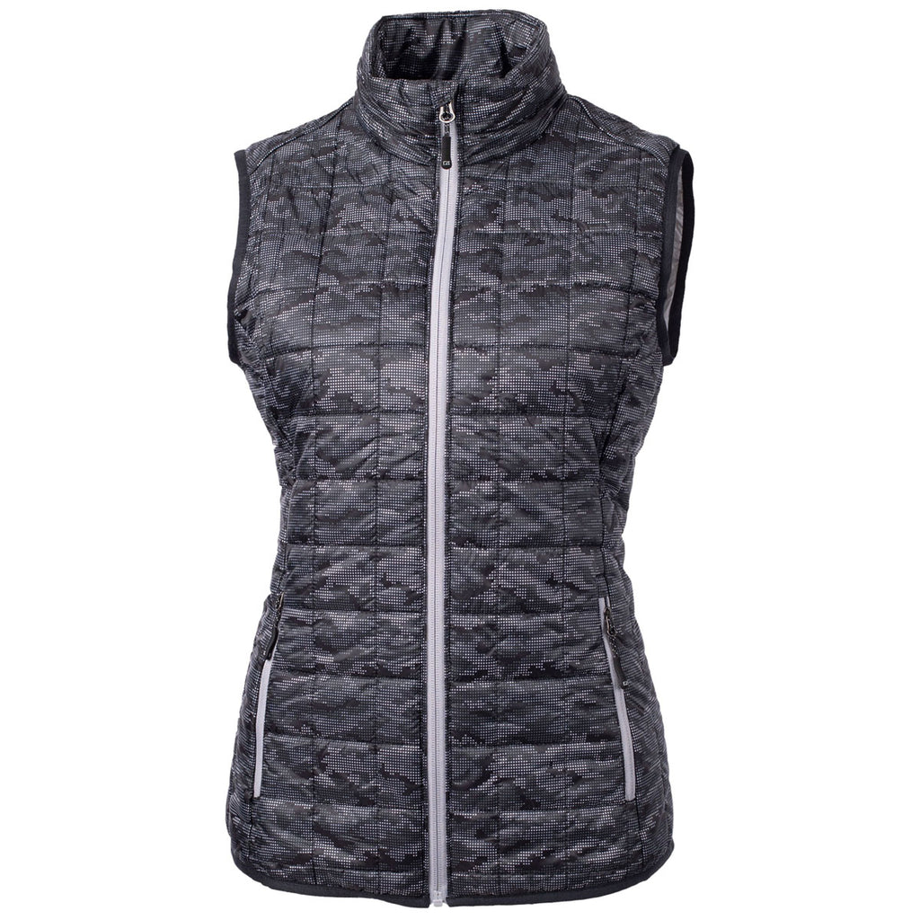 Cutter & Buck Women's Black Rainier PrimaLoft Eco Insulated Full Zip Printed Puffer Vest