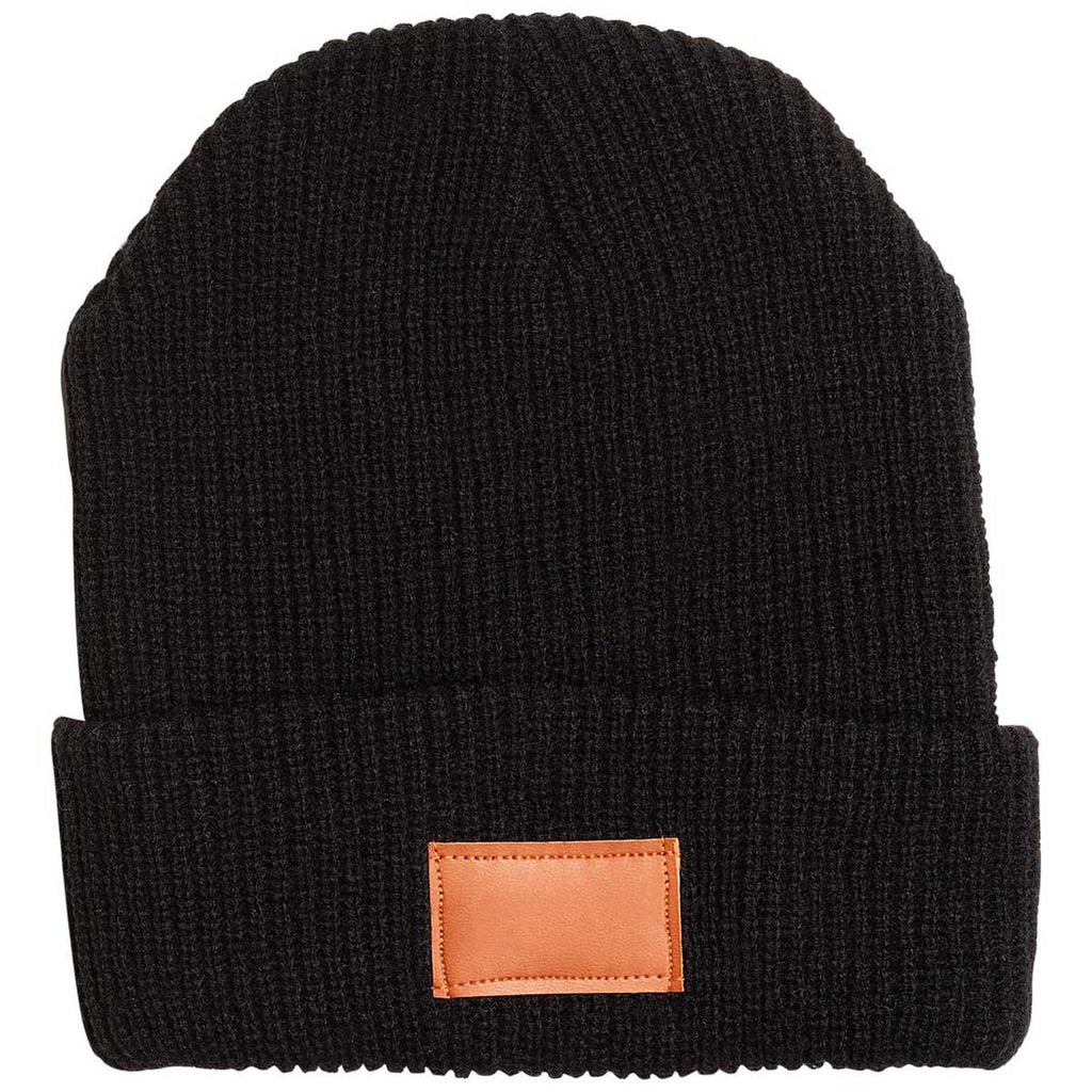 • 100% Acrylic rib knit beanie with PU faux leather patch on front cuff