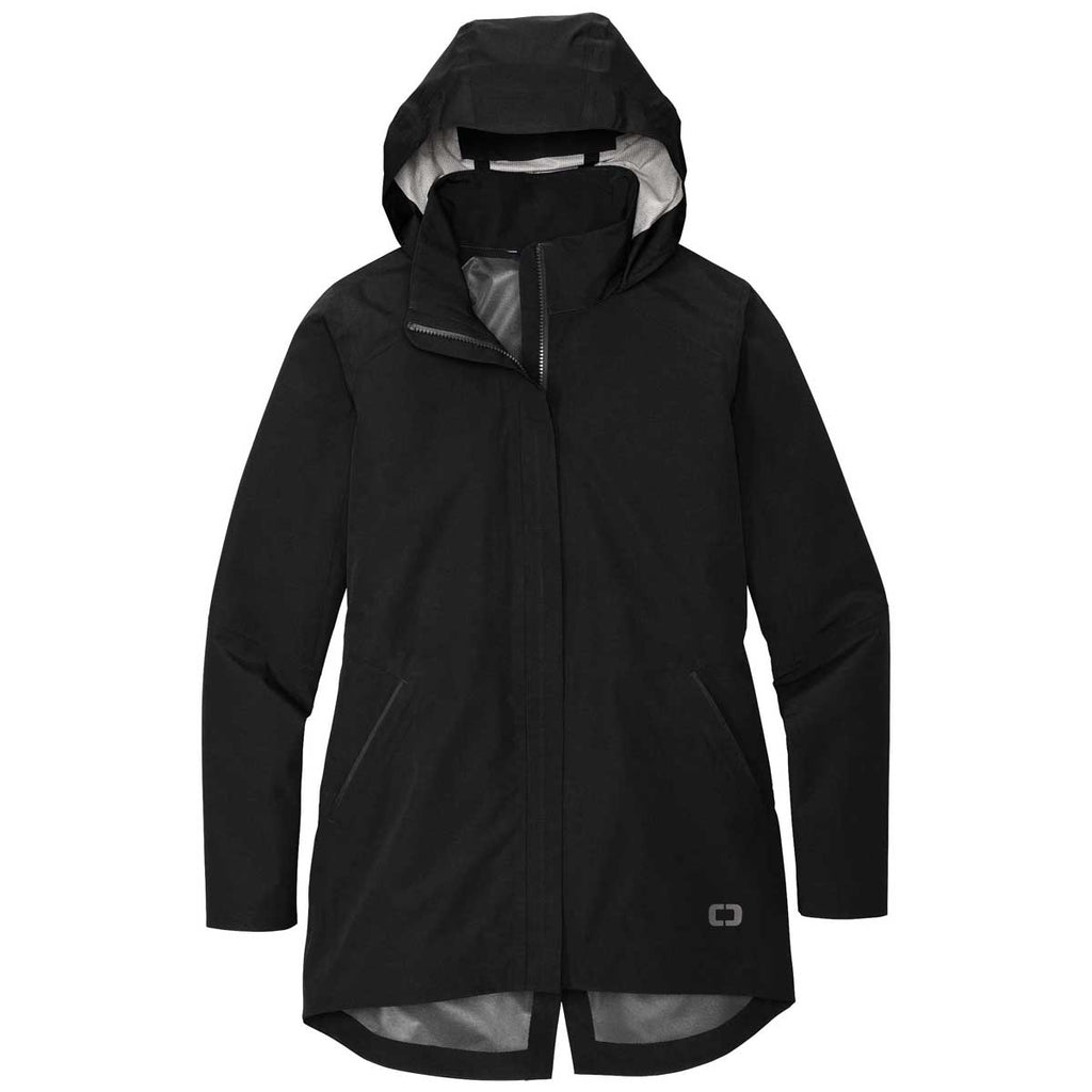 Do it all with a custom OGIO Women's Blacktop Utilitarian Jacket. This sleek, modern jacket is a show stopper in the parka length design, yet functional in the weather protection finish. Add embroidery in your design to create a custom gift that most will adore. The 100% poly shell is bonded to a water resistant film insert for both wind and water resistance. Breathable, this jacket has an adjustable, packable hood and black reflective taping details for that bit of extra.