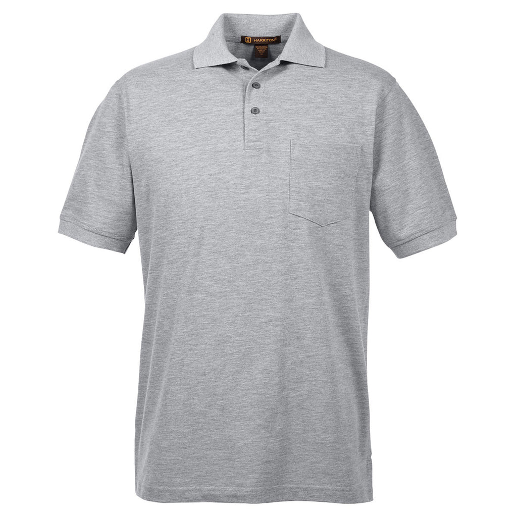 Harriton Men's Grey Heather 5.6 oz. Easy Blend Polo with Pocket