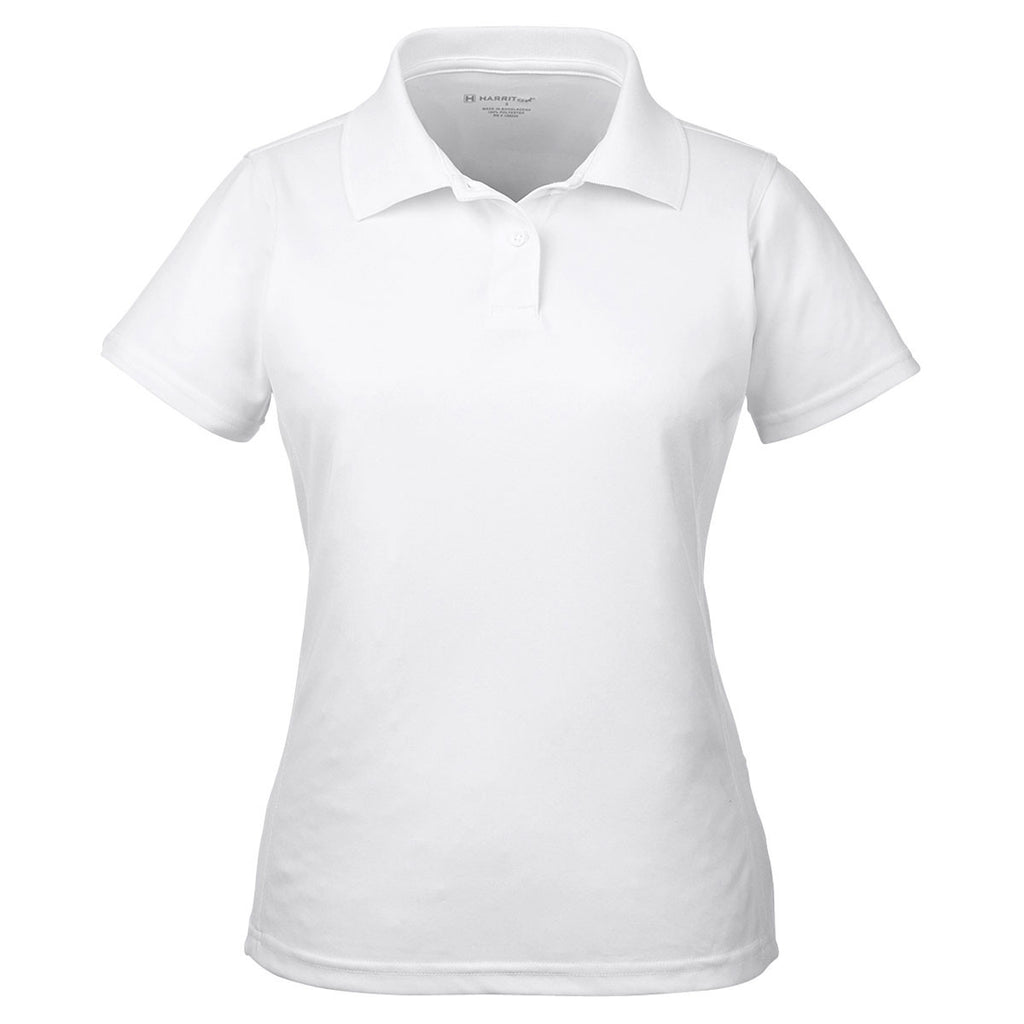 Double-needle topstitch on the side vents and bottom hem creates a compelling design for the Harriton Women's White 4 oz. Polytech Polo; The clean-finished inside neck and self-fabric neck tape complement the stylish two-button placket. One-hundred percent polyester absorbs and wicks moisture quicker than cotton. Antimicrobial properties keep you looking fresh during an all day corporate event. Anti-static measures eliminate the sudden shock of static to the skin. Add a custom logo to create more recognition for your company. Logoed corporate apparel provides you with a powerful platform to market your products and services.Corresponding Men's Style: Harriton Men's White 4 oz. Polytech Polo