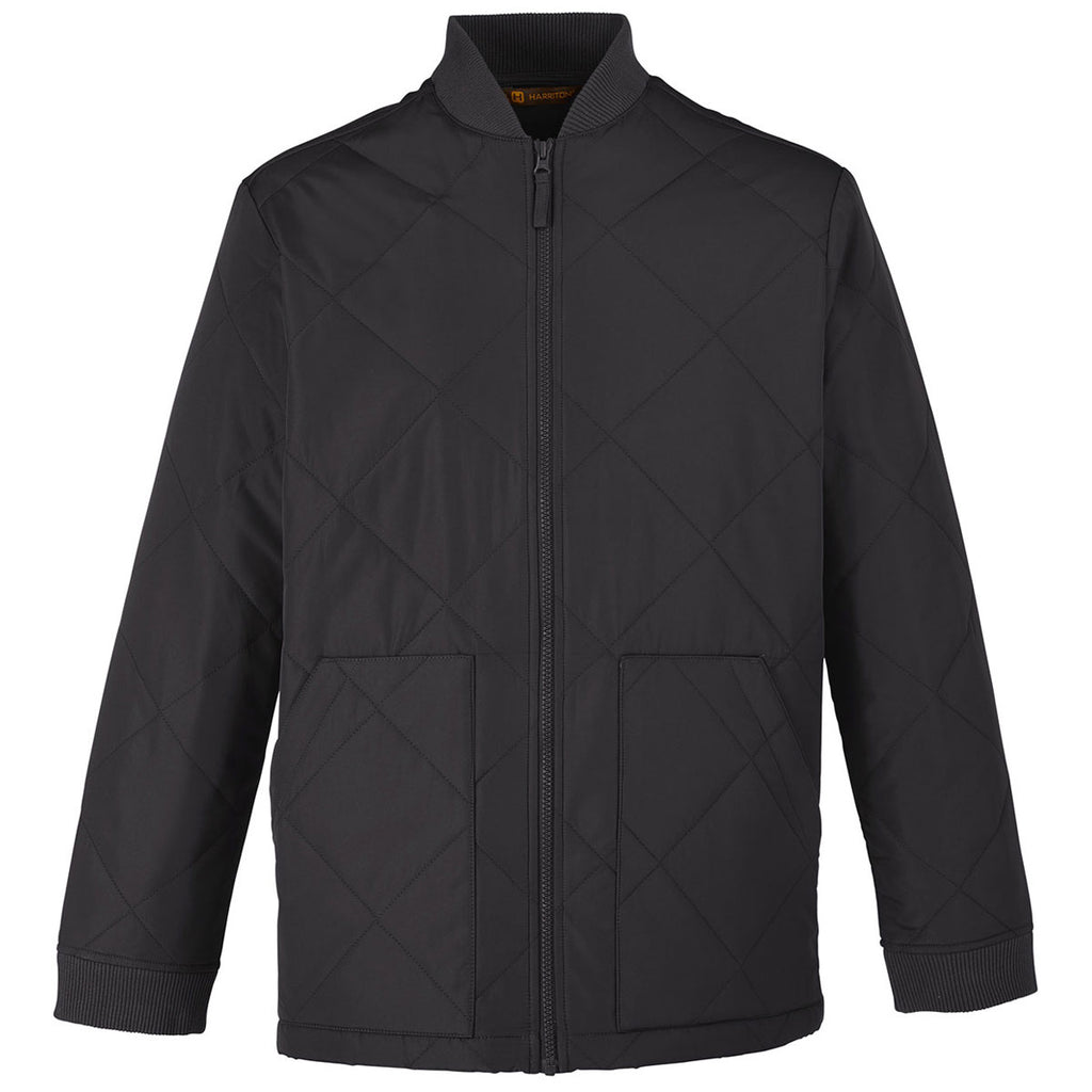 Choose custom embroidery for the Harriton Men's Dark Charcoal Dockside Insulated Utility Jacket to create a look that can easily transition from corporate apparel to dinner out with friends. Made of 100% polyester pongee with thermal poly fill, this water-resistant jacket is ready for almost anything. The beautiful large quilted pattern on the shell creates a look that is both fun and professional. Large side slit deep pockets are perfect for a phone and keys with hidden metal snap closure to secure these important items. Add a company logo to use this as an employee gift that can be enjoyed during the cooler months of the year.Highlights