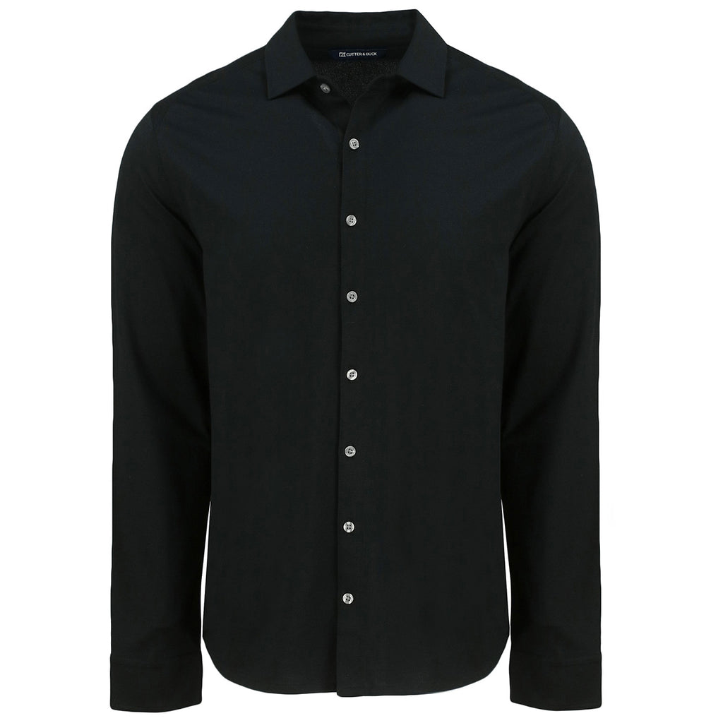 Design a corporate logo for the Cutter & Buck Men's Black Advantage Tri-Blend Eco Soft Pique Long Sleeve Knitted Button Down. The stretch pique fabric offers sun protection, moisture wicking, and a self-fabric collar, all made from sustainable materials. Great for work, errands, or chilling at home while looking great.Corresponding Women's Style: Cutter & Buck Women's Black Advantage Tri-Blend Eco Soft Pique Long Sleeve Knitted Button Down