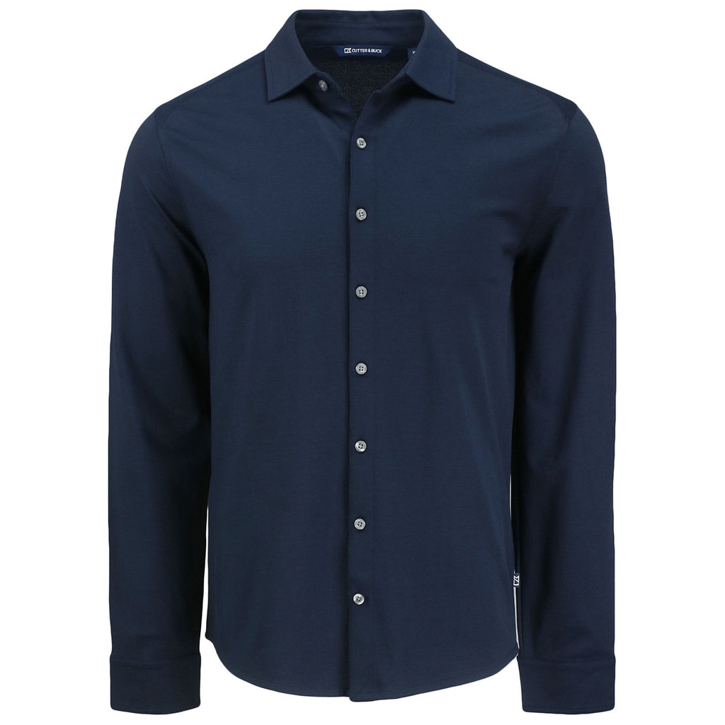 Cutter & Buck Men's Liberty Navy Advantage Tri-Blend Eco Soft Pique Long Sleeve Knitted Button Down