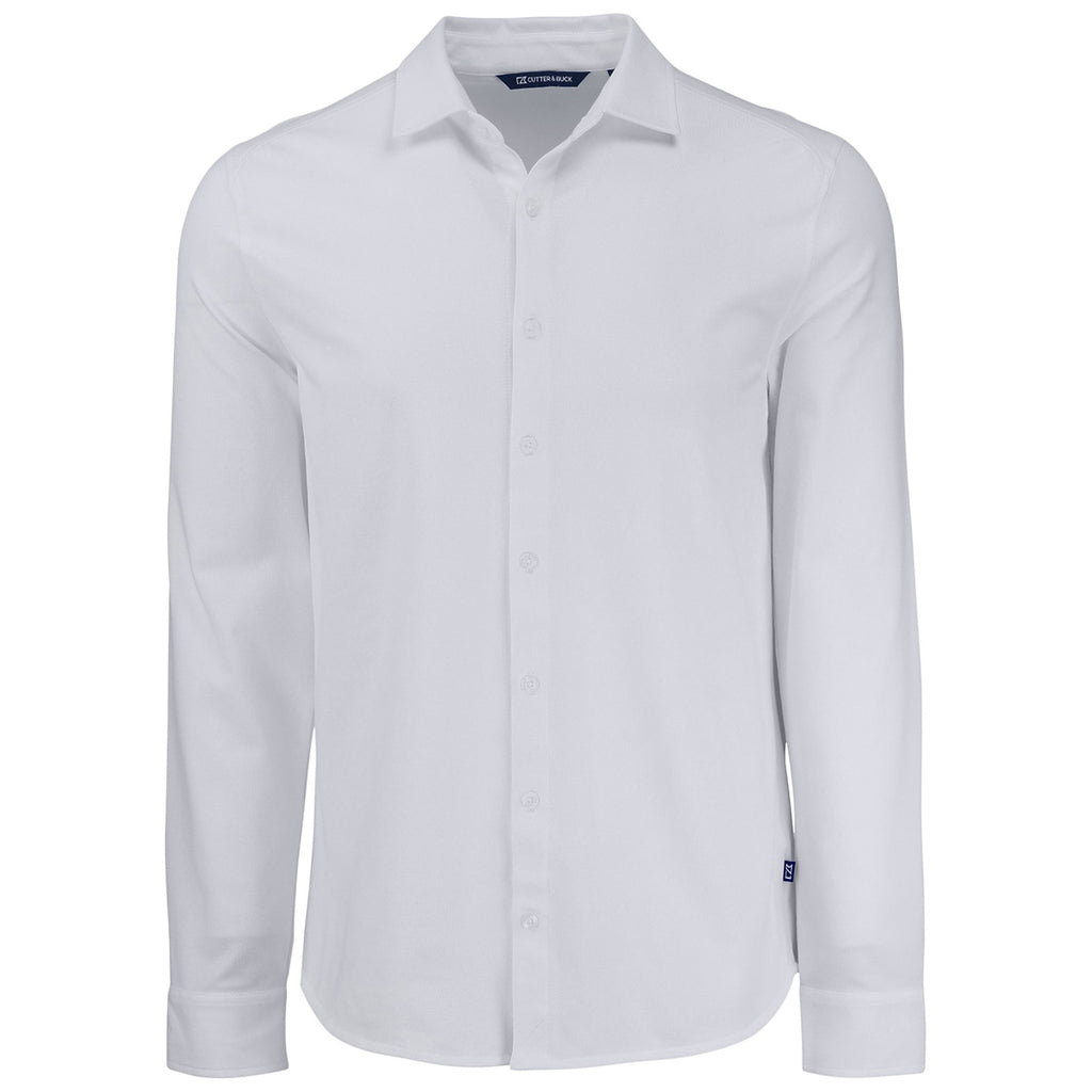 Cutter & Buck Men's White Advantage Tri-Blend Eco Soft Pique Long Sleeve Knitted Button Down
