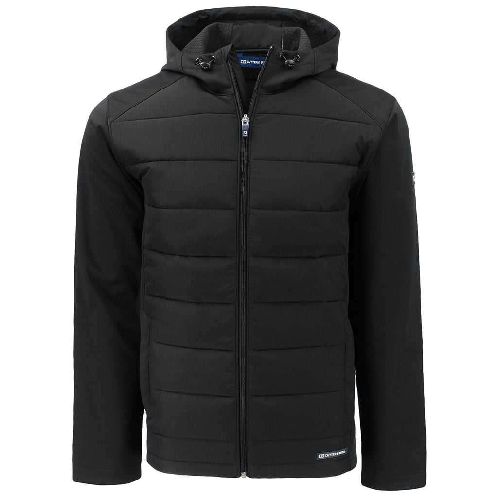 Cutter & Buck Men's Black Evoke Hybrid Eco Softshell Recycled Full Zip Hooded Jacket