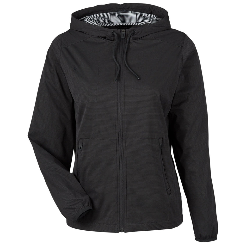 North End Women's Black Heather Network Lightweight Jacket with corporate embroidery is a fun and fashionable way to give an employee gift or create outerwear for those who need it. The breathable, lightweight design will keep you dry and protected when sudden Spring showers hit. Place an order right away before these sell out.Highlights