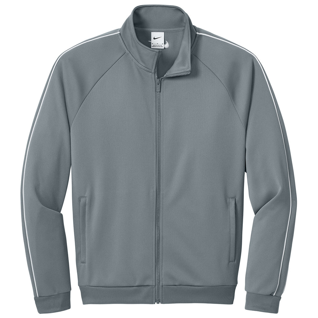 Get active with a custom Nike Men's Cool Grey Track Jacket. This classic track jacket can be used as warm-up gear or as a fashion statement while looking great doing both. Pair with a favorite pair of jeans or a uniform. The zip-through cadet collar keeps you protected from the wind as you go about your day. Order soon.This product cannot ship outside of the United States.