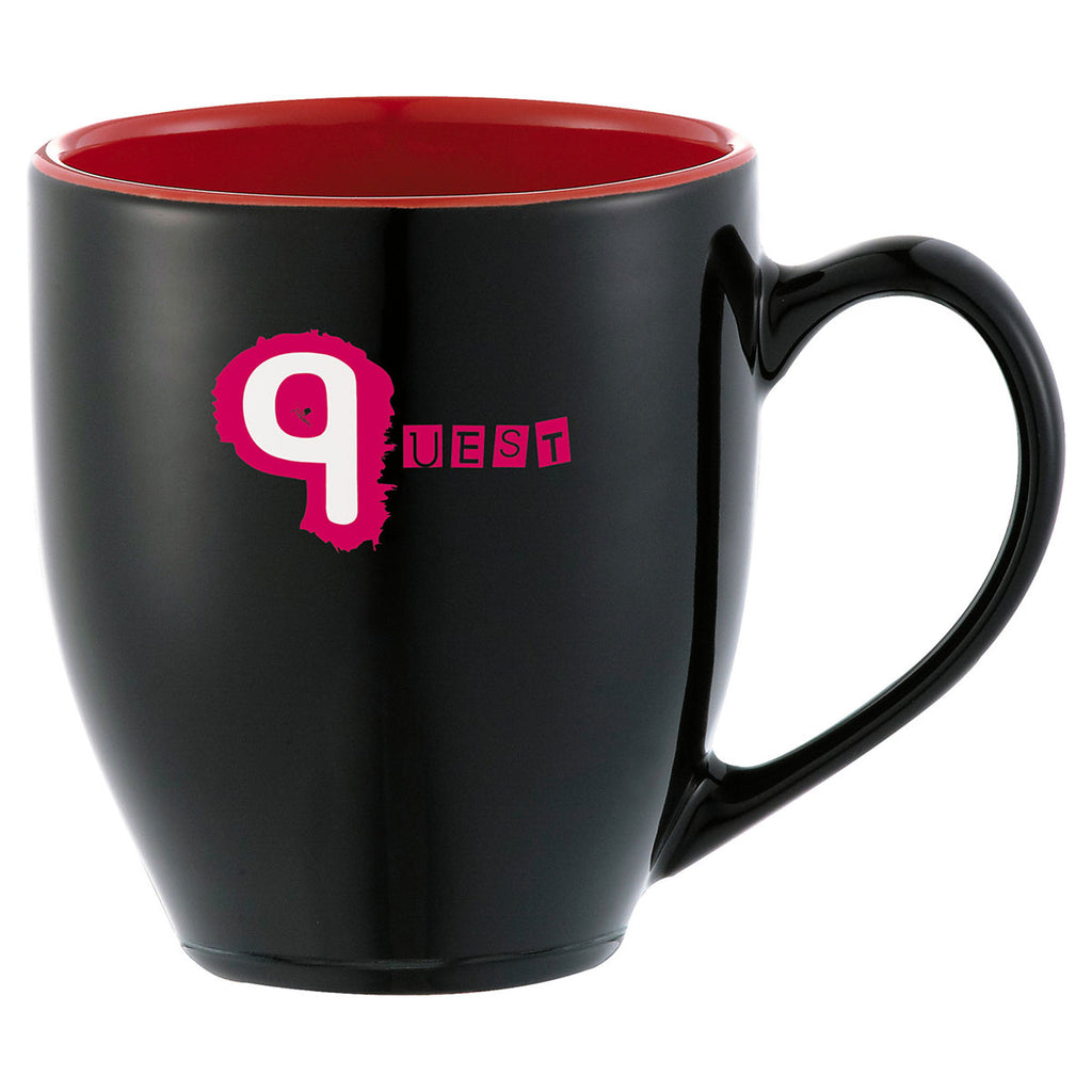 The dual-color layout of the Bullet Black With Red Lining Zapata 15oz Mug Electric makes it a crowd-pleaser. The outside features a ceramic body while the inside features a distinct color accent of your choosing. Add your company's logo to the outside to complete the look. The design is a great option for your employees who enjoy coffee or tea.The minimum order for this product is 150 pieces.
