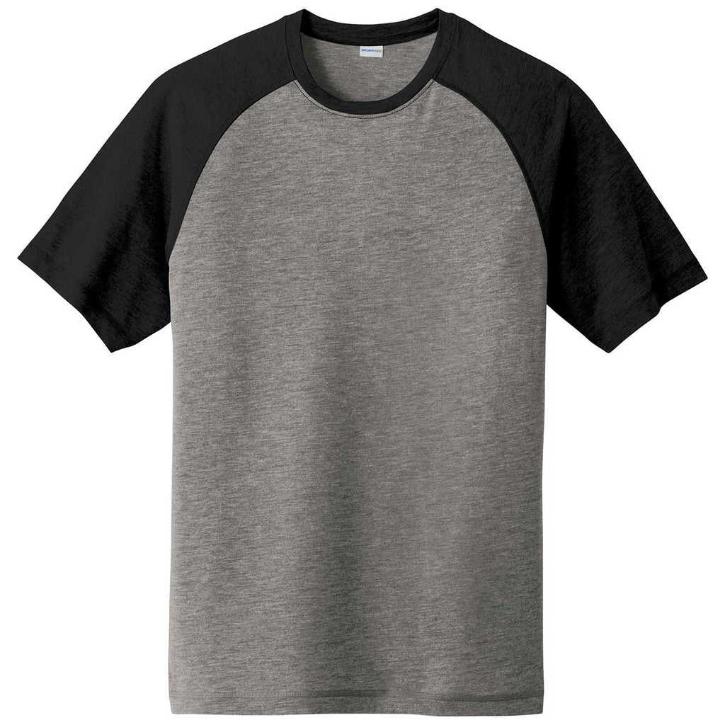 Sport-Tek Men's Black Triad Solid/Dark Grey Heather PosiCharge Tri-Blend Wicking Raglan Tee