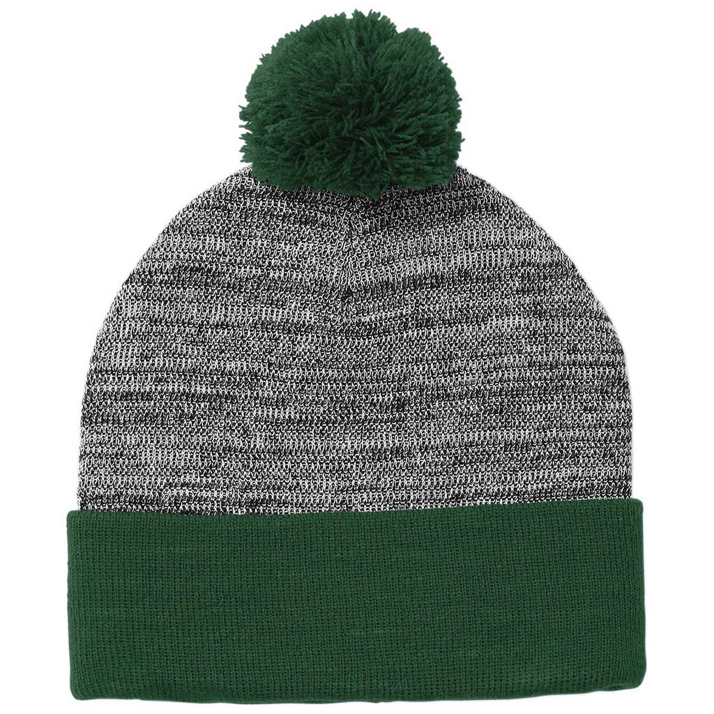 Sport-Tek Forest Green/Grey Heather Heather Pom Pom Beanie