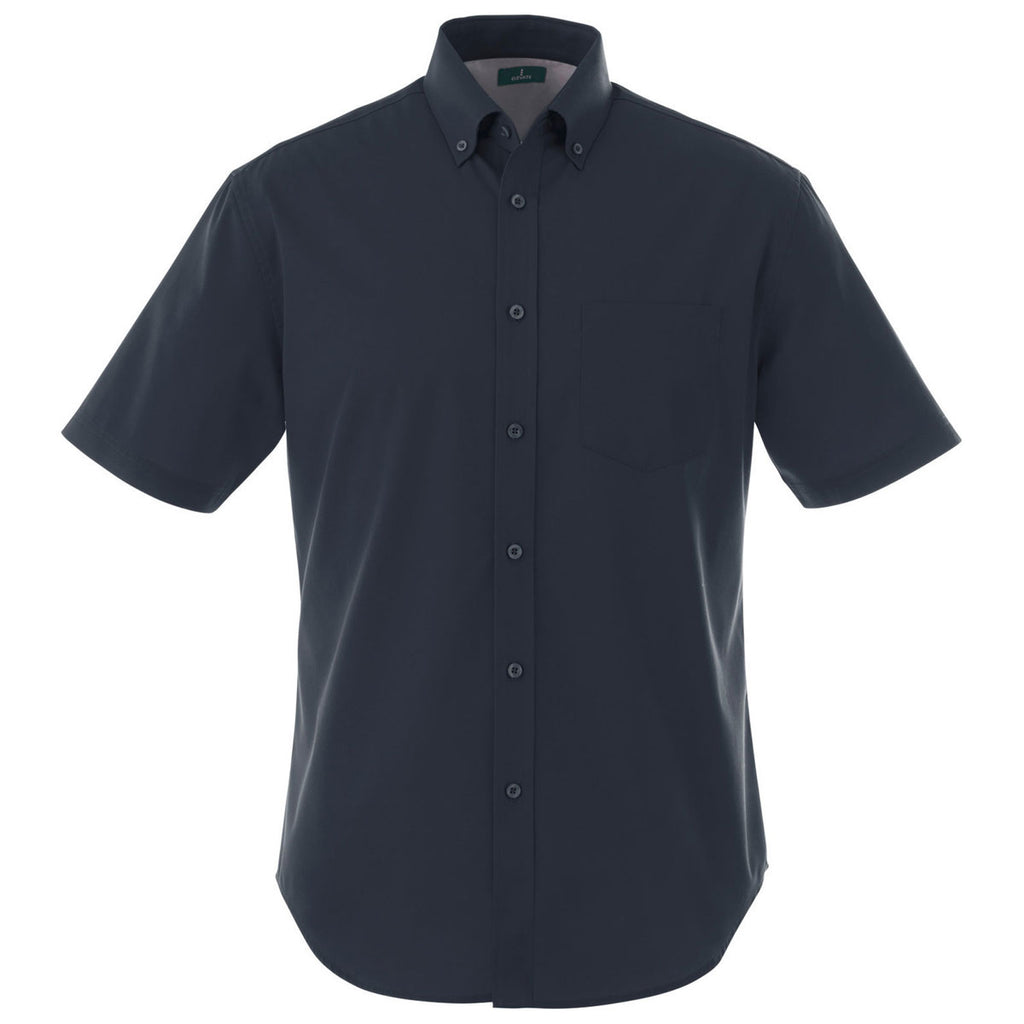 The Elevate Men's Navy Stirling Short Sleeve Shirt with your custom logo will make any man look sharp and classy. Its classic look never goes out of style. Give your customers a gift they will use for years to come. It features a left-chest pocket and center-back box pleat. It comes in many colors, giving you many options to choose from to fit your brand. Your employees will gladly wear this classic shirt, so make sure to include it in your next giveaway! It is ideal for warm summer days when they have to stay cool. Whether they are going to work or driving their kids to school, they will advertise your brand.Corresponding Women's Style: Elevate Women's Navy Stirling Short Sleeve Shirt
