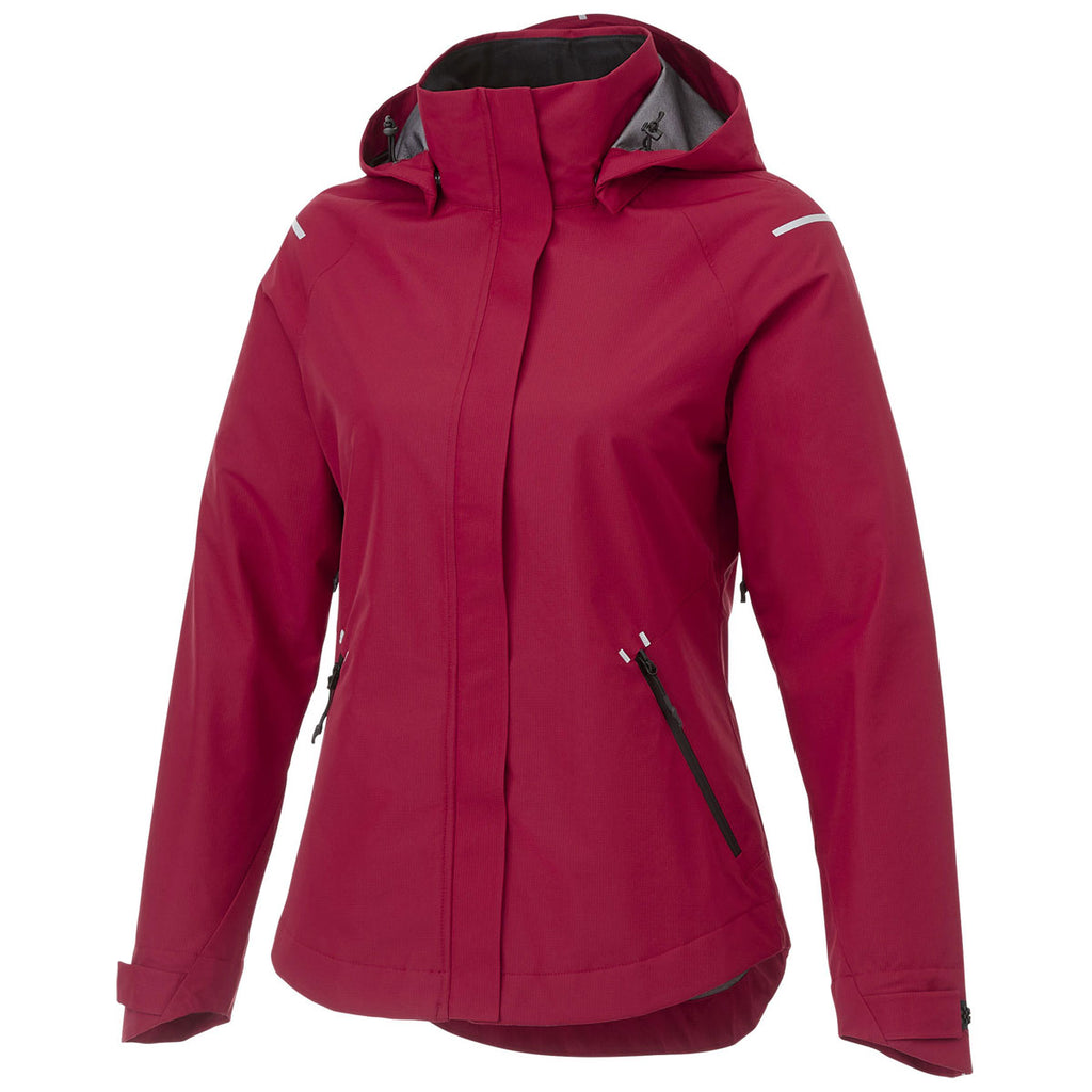 Add a custom logo to the Elevate Women's Vintage Red Gearhart Softshell Jacket to create a look that will be ready to go wherever you want. This ultra-lightweight jacket is waterproof and breathable with critical seam sealing and a snap off hood. The three layer construction offers soft brushed tricot against your skin and a sleek outer layer to keep you dry. Create rain gear for any occasion with a little something extra like a custom logo. Try a company logo to use as employee apparel or gifts for any occasion. Perfect for those who need something easy to layer and get on and off with the front zip and side zippered pockets.Corresponding Men's Style:Elevate Men's Vintage Red Gearhart Softshell Jacket