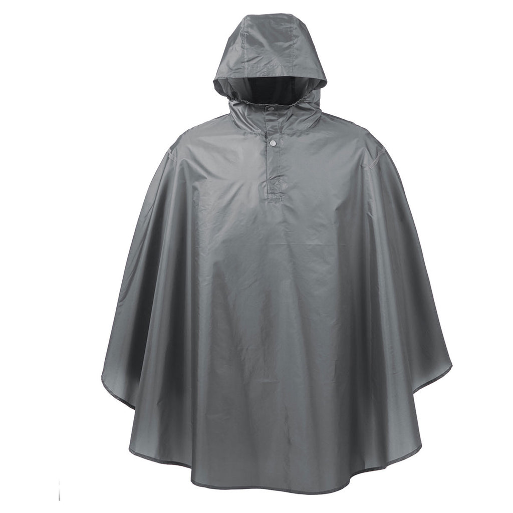 The forecast calls for a chance for rain, so you bring along the Team 365 Men's Sport Graphite Stadium Packable Poncho to keep Mother Nature's moisture at bay. Water resistant treatment for each poncho ensures you remain dry whenever the skies open up. Use the shock cord located at the lower hem for enhanced protection against foul weather. The poncho packs neatly into a square for instant access out of a coat pocket or a front backpack compartment. Reflective tape details on the back and shoulders create a stylish appearance. Attach a custom logo to let everyone around you know about your company.Highlights