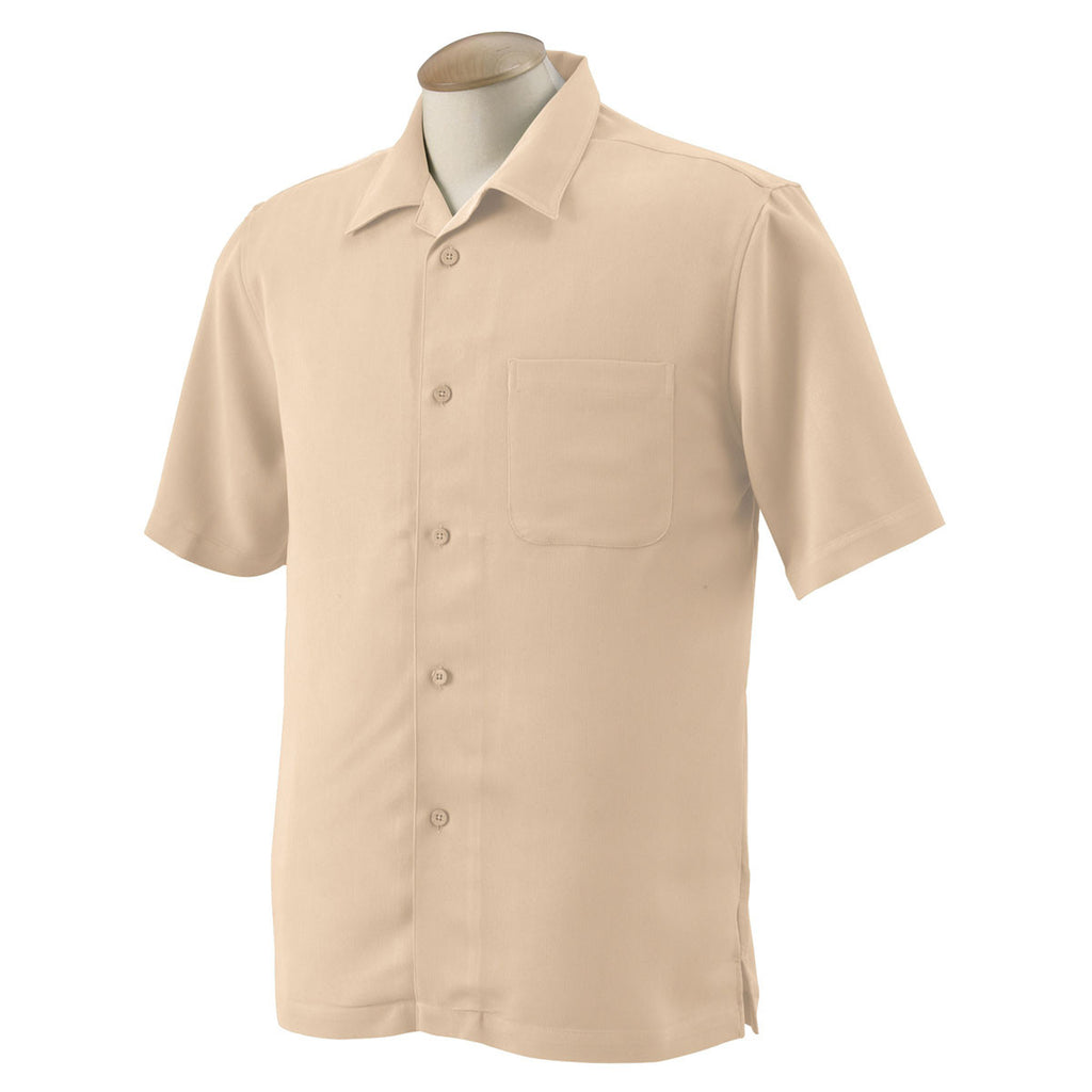 Sixty-six percent rayon and thirty-four percent polyester pieced Bedford cord comprise the rugged materials that make up the Harriton Men's Sand Bahama Cord Camp Shirt. The versatile shirt resists rips and tears to give you years of high-quality use. Wrinkle prevention properties allow you to wear the stylish camp shirt throughout the day, without unsightly wrinkles appearing on the fabric. The full-button front complements the self-fabric collar to create a fashionable corporate garment that is the perfect gift for the loyal customers of your business. Attach your corporate logo to increase recognition of your company at business seminars.Corresponding Women's Style: Harriton Women's Sand Bahama Cord Camp Shirt