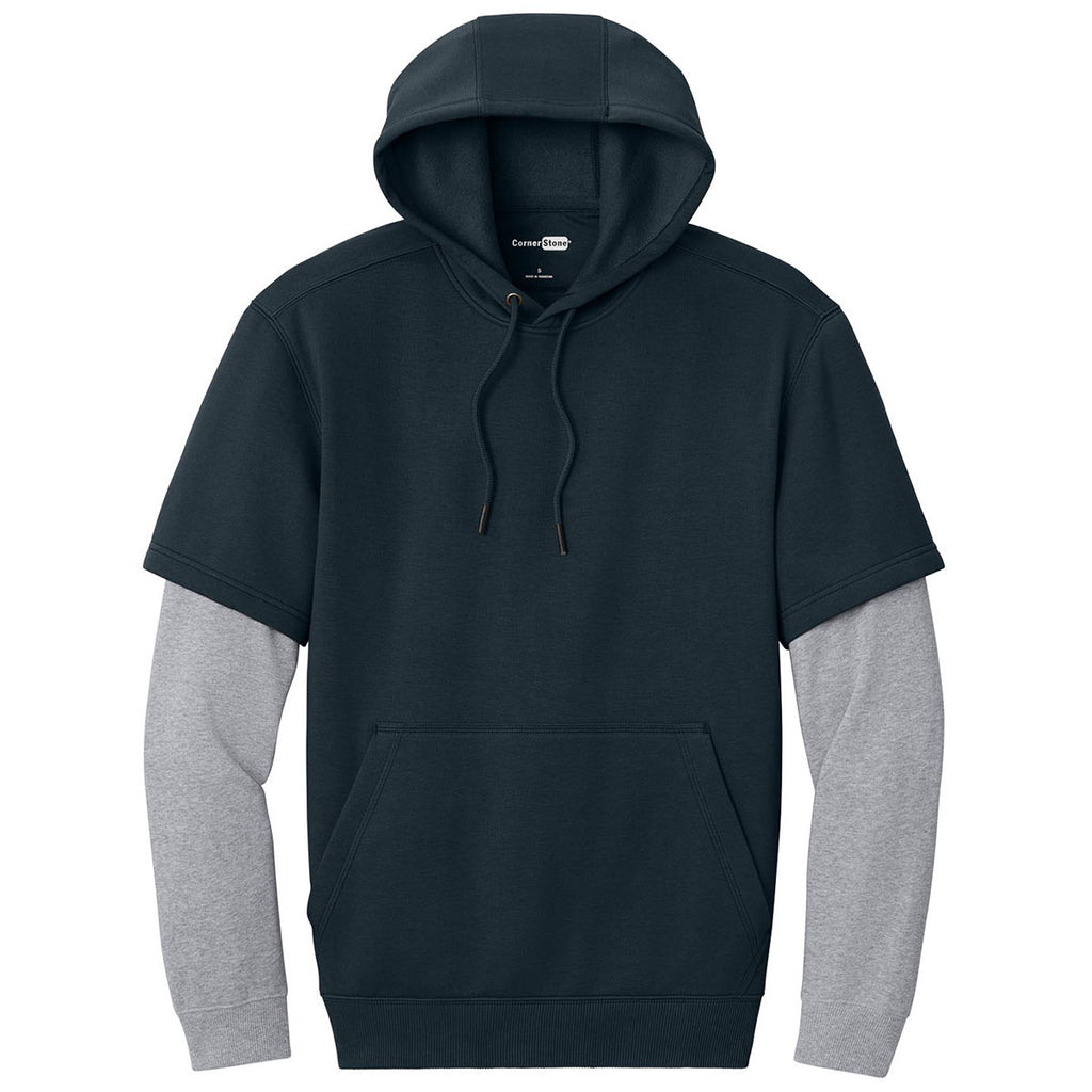 CornerStone Men's Navy/Heather Grey Touch Fleece Layered Hoodie