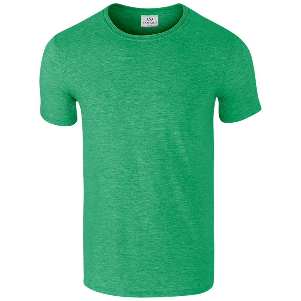 Design a custom logo for the Vantage Men's Heather Irish Green Hi-Def T-Shirt to use as a uniform or creative new look for your custom line. The lightweight, semi-fitted tee is 100% cotton and preshrunk, making it great for daily wear. Your logo will be the star of this simple piece. Place an order today so you do not miss out.Highlights