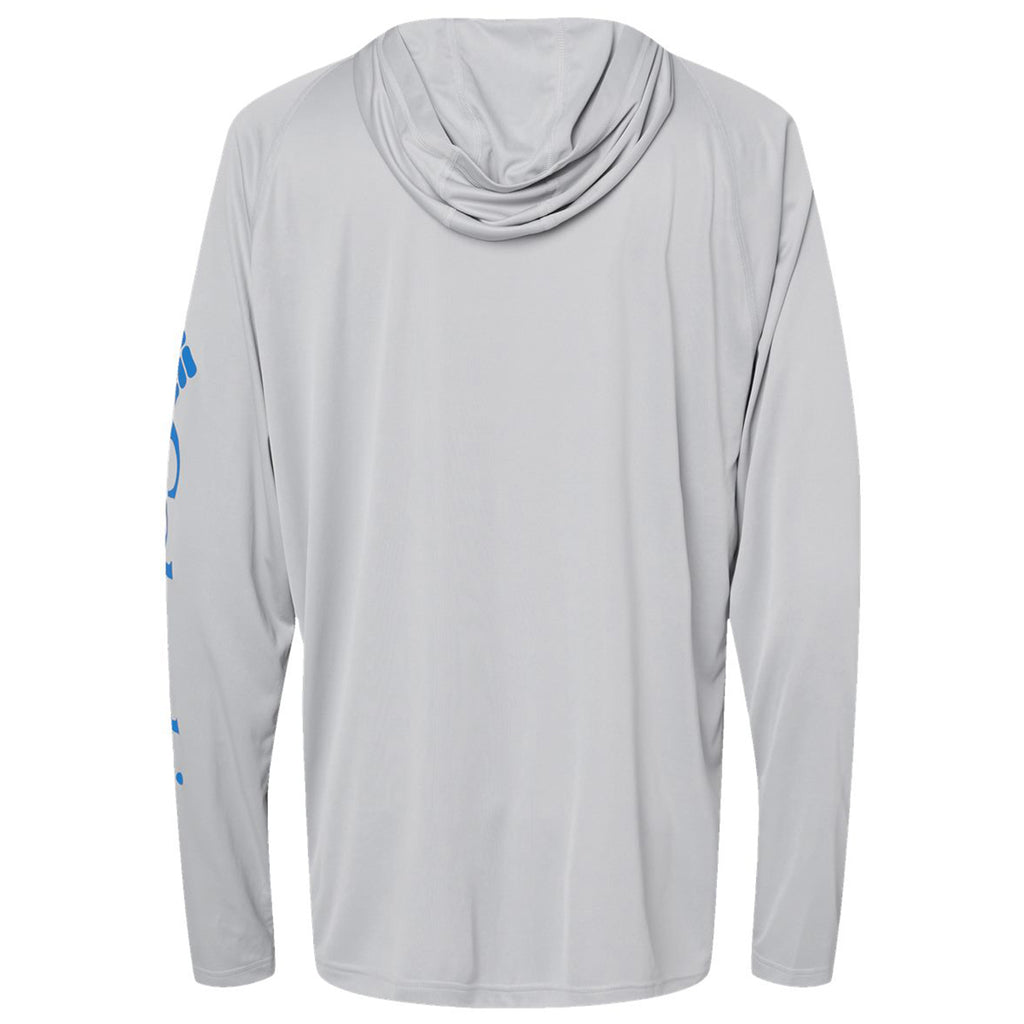 Columbia Men's Cool Grey/Vivid Blue PFG Terminal Tackle Hooded Long Sleeve T-Shirt