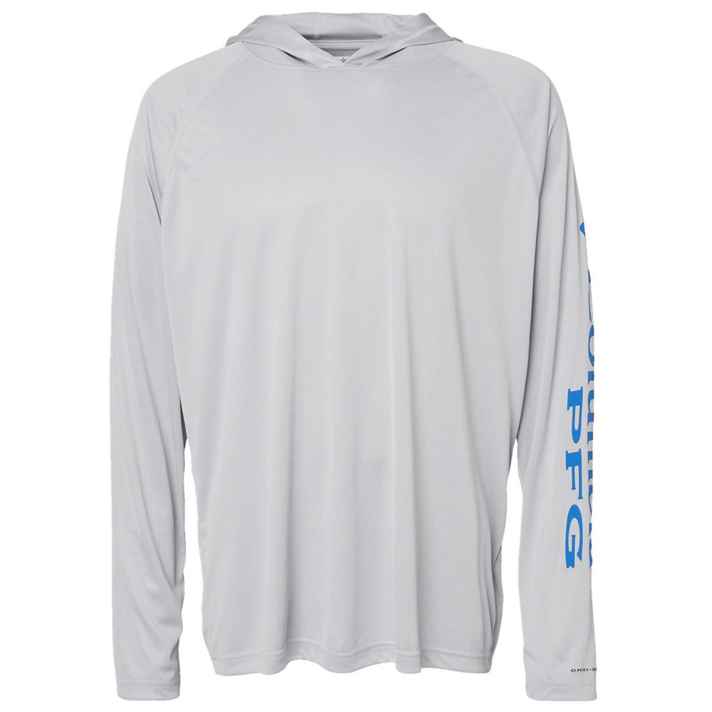 Columbia Men's Cool Grey/Vivid Blue PFG Terminal Tackle Hooded Long Sleeve T-Shirt with a custom design is one of the best options available when it comes to spending time outdoors. Whether hunting, fishing, camping, or hiking, this long-sleeve tee provides you with UPF 50 sun protection and quick dry technology to keep you comfortable throughout the day.This product cannot ship outside of the United States.