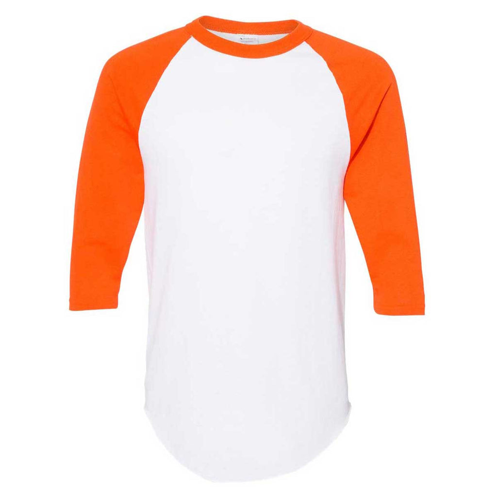 Augusta Sportswear Men's White/Orange Three-Quarter Raglan Sleeve Baseball Jersey