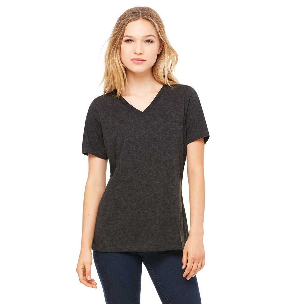 Bella + Canvas Women's Charcoal-Black Triblend Relaxed Jersey Short-Sleeve V-Neck T-Shirt