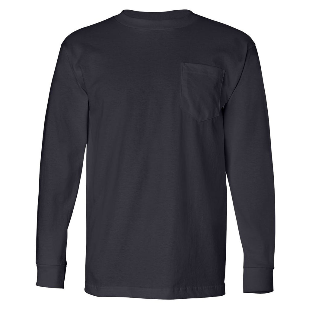 Bayside Men's Navy USA-Made Long Sleeve T-Shirt with Pocket