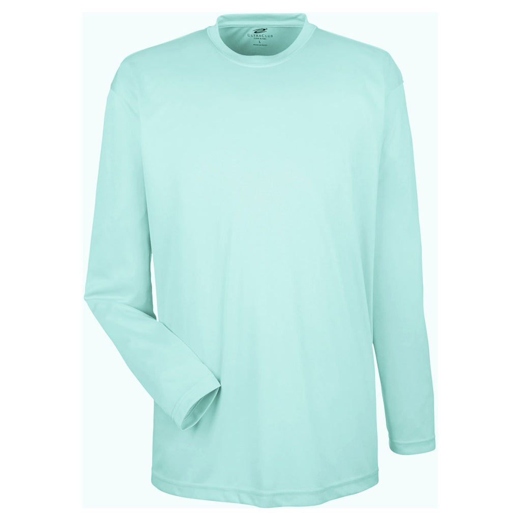 UltraClub Men's Sea Frost Cool & Dry Sport Long-Sleeve Performance Interlock T-Shirt
