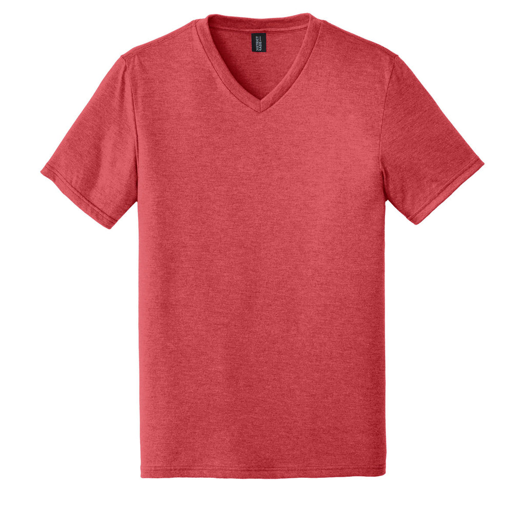 If you are searching for the ultimate gift to welcome a group of new employees, look no further than the custom printed District Men's Red Frost Perfect Tri V-Neck Tee. The super comfortable tee contains a blend of polyester, ring spun cotton, and rayon to deliver a rugged shirt that feels super smooth on the skin. The tough fabric resists rips and tears to give you a short sleeve shirt for years to come. Wear the tee as an only layer or put it on under a pullover to fight back against cold weather. Add your company logo to create interest in your brand at professional networking events.Highlights