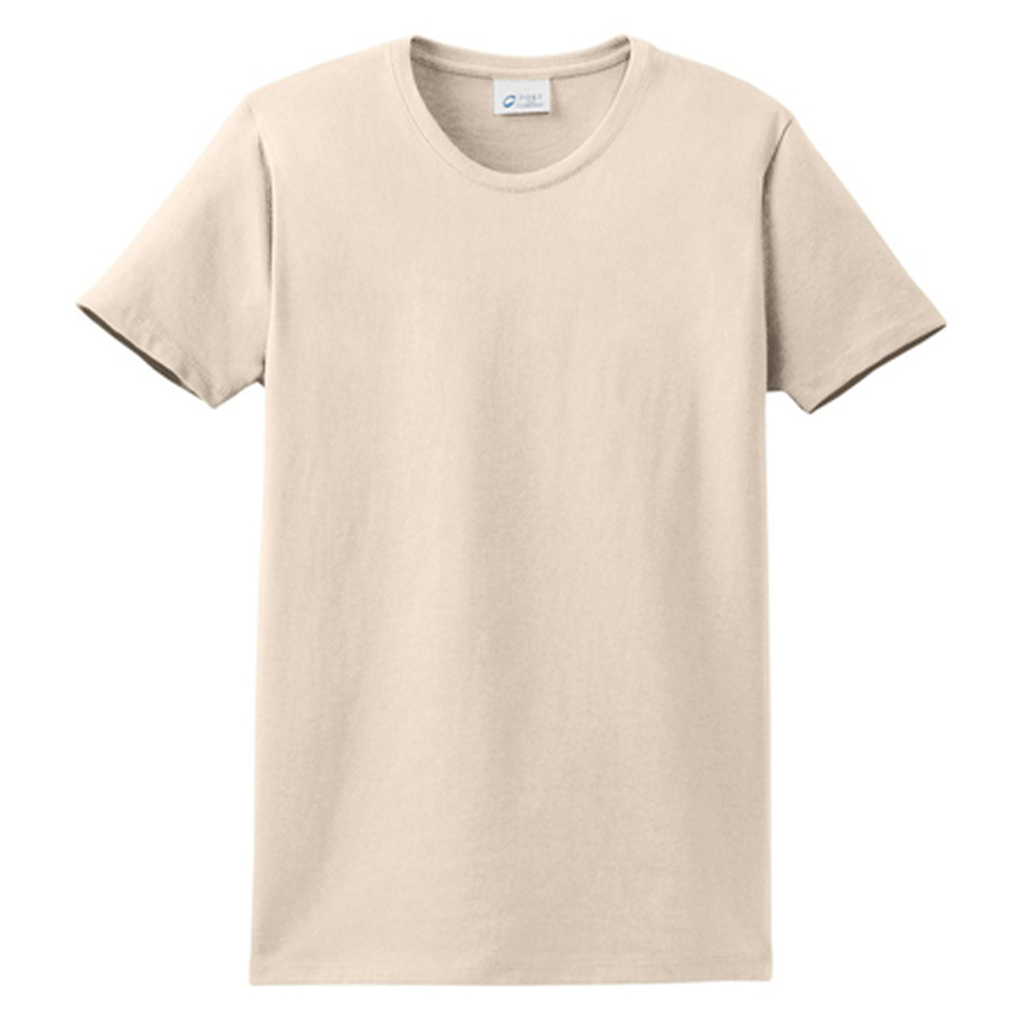 A perennial favorite, this Port & Company Women's Natural Essential Tee is crafted from lightweight, soft-spun cotton. Declared as "most popular" by groups and teams across America. Features a shorter midriff and sleeves for a more feminine fit. Emblazon this crew neck tee with your company's logo or message to gift it to your clients as a corporate give-away or a summer uniform staple for your employees. Either way, it will help your company or organization stand out and create an impactful brand identity.