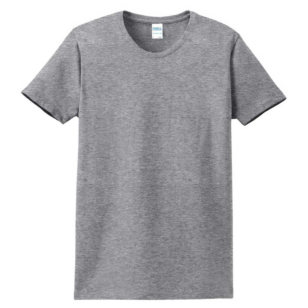 A perennial favorite, this Port & Company Women's Athletic Heather Essential Tee is crafted from lightweight, soft-spun cotton. Declared as "most popular" by groups and teams across America. Features a shorter midriff and sleeves for a more feminine fit. Emblazon this crew neck tee with your company's logo or message to gift it to your clients as a corporate give-away or a summer uniform staple for your employees. Either way, it will help your company or organization stand out and create an impactful brand identity.Highlights