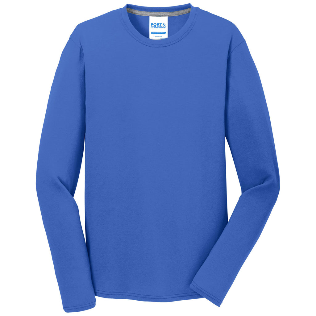 Port & Company Men's True Royal Long Sleeve Performance Blend TeeHighlights