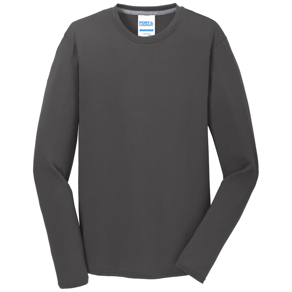 Port & Company Men's Charcoal Long Sleeve Performance Blend TeeHighlights