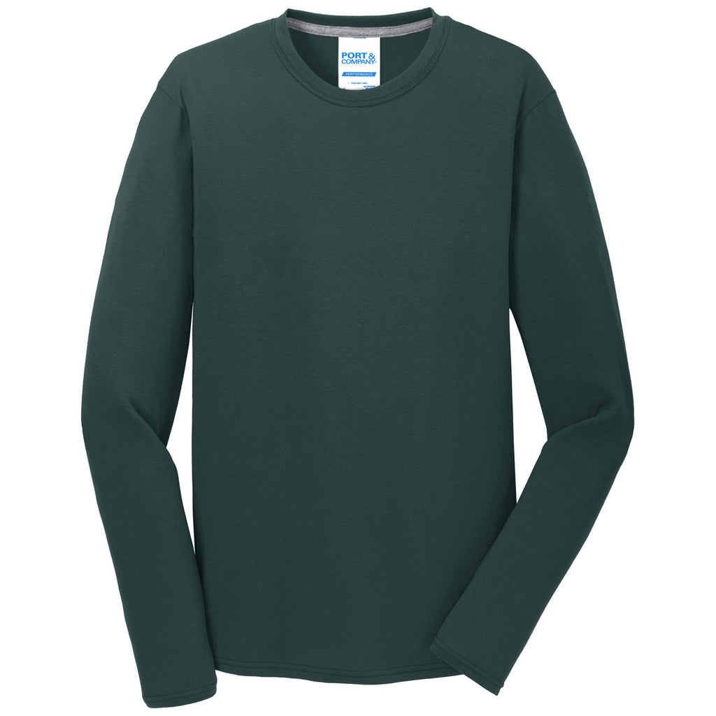 Port & Company Men's Dark Green Long Sleeve Performance Blend Tee