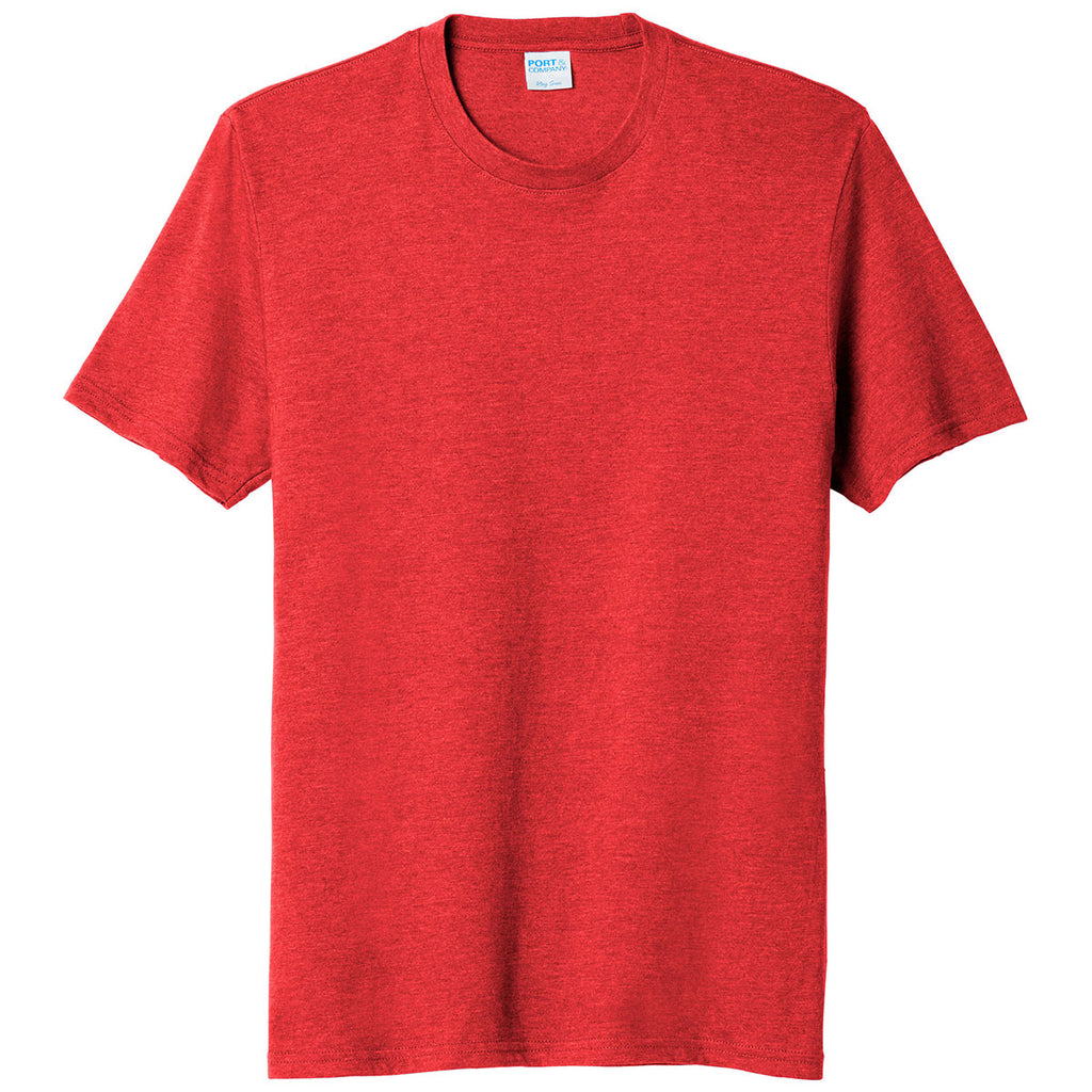 Proudly display the unity of your corporate team by ordering the screen printed Port & Company Men's Bright Red Heather Fan Favorite Blend Tee. The ultra soft fabric contains 60% ring spun cotton and 40% polyester to deliver supreme comfort and long lasting durability. Shoulder to shoulder taping presents a refined appearance that sets your team apart from other professionals attending an industry trade show. Wear the tee as an only layer when the heat ramps up and make it the first layer of an autumn cool weather fashion ensemble. Add a custom logo on the front of the tee to promote your company at civic events.Corresponding Women's Style: Port & Company Women's Bright Red Heather Fan Favorite Blend V-Neck Tee