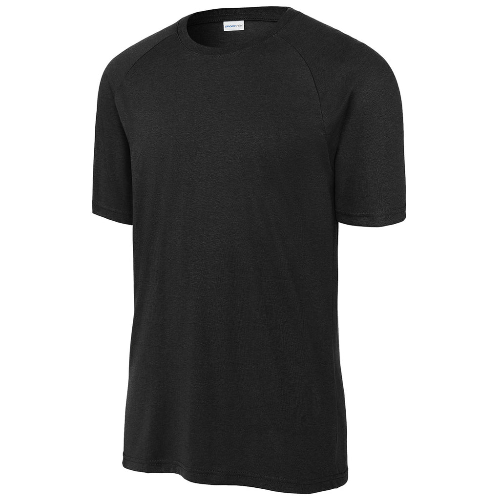 Sport-Tek Men's Black Halftime Raglan Tee with a custom logo is a simple, versatile option for almost any need. Whether you need uniforms with a corporate logo, team gear, or to add to your logoed apparel line, this raglan tee fits the bill. Great for organized events and specialty shows. Place an order right away.Highlights