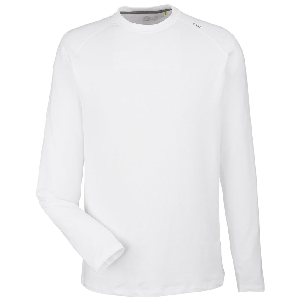 Get active with a custom logo on the tasc Men's White Carrollton Fitness Long-Sleeve T-Shirt. The relaxed-fitting tee is moisture-wicking, anti-odor, and has a UPF 50+ for all-day comfort and wear. Perfect for the gym, as workout wear, and as general or layer-able wear for whatever you choose to do during the day.