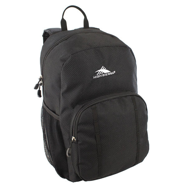 For work or school or for anything you do, the High Sierra Black Pilsen Backpack handles all of your on the go storage needs. The large main compartment securely stores large items, such as tablets and laptop computers. Enjoy the comfort of the padded back panel and shoulder straps that make hauling heavy loads a cinch. Waterproof materials make this multi-purpose backpack a hit among both commuters and outdoor enthusiasts. Organize all of your work materials in the gusseted front pocket that includes a multi-pocket organizer. Attach a custom logo to the backpack that promotes your company everywhere you go.Highlights
