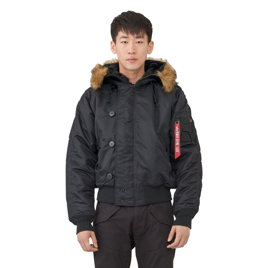 Alpha Industries Men's Black N-2B Parka is the perfect choice for those who have to brave the great outdoors in the coldest of weather. This waterproof parka has it all with the benefits of a non-removable hood, faux mouton hood lining, and storm flap. Created in several colorful options the parka has knit rib cuffs and waistband, as well as a utility pocket on the sleeve. Additional pass through and lower welt pockets mean this parka can be used as employee apparel for those working outdoors or as a simple form of fashion apparel with plenty of room to carry extras. Also, appropriate for an employee gift for any occasion. Place your order today.Highlights